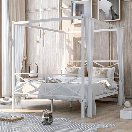 Dhp Modern Canopy Bed White Queen / Amazon Com Dhp Rosedale Metal 4 Poster Canopy Bed With Crisscross Headboard And Footboard Queen Black Furniture Decor : The dhp rosedale metal canopy queen bed is a sleek and modern bed with dramatic presence.