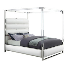 The modern canopy bed is available in twin, full, queen and king sizes in various colors.